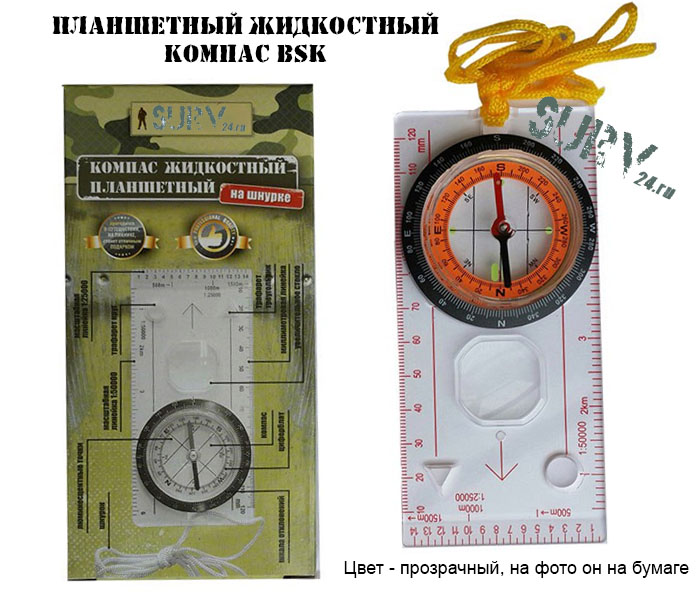 Планшетный компас BSK - это инструмент для ориентирования на местности и работы с картой. Совмещен с линейкой.