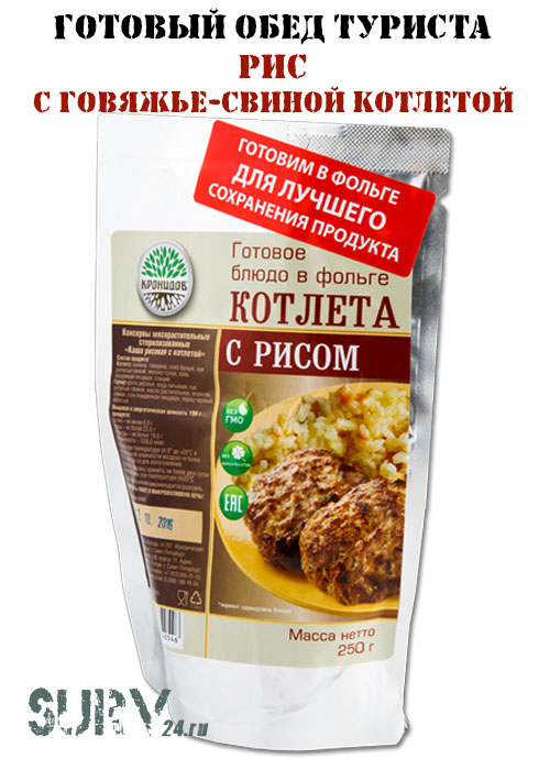 Артикул: Готовый обед туриста Кронидов "Рис с говяжье-свиной котлетой"
