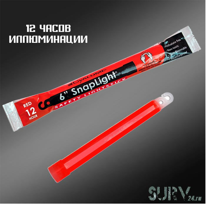 Артикул: Химический источник подачи сигнала Cyalume Snaplight 6" (красный, на 12 часов)