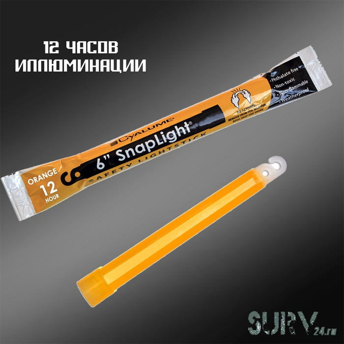 Артикул: Химический источник подачи сигнала Cyalume Snaplight 6" (оранжевый, на 12 часов)