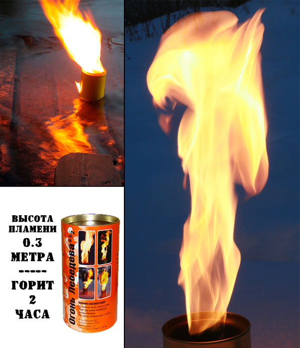 Огонь Лебедева (он же - Свеча Лебедева, он же - топливный патрон в виде длиннопламенной свечи) - это мощный источник тепла и света с высотой пламени 0,3 метра.