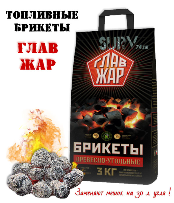 Топливные брикеты Главжар - это универсальный источник топлива для похода, выезда на пикник, охотничьего костра или посиделок у камина. Один мешок на 3 кг брикетов ГлавЖар заменяет собой 30 литровый мешок угля.