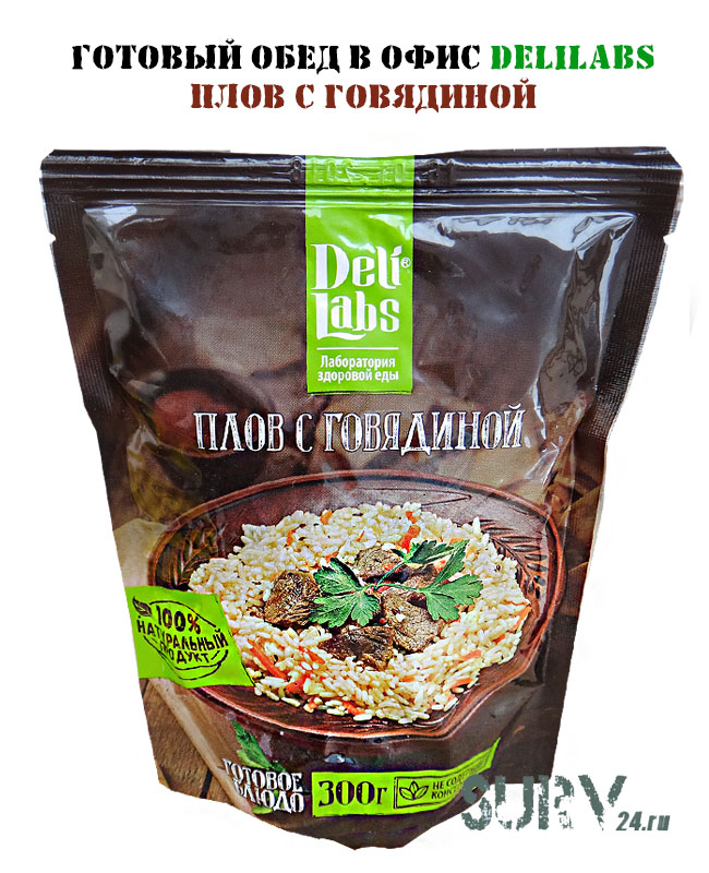 Готовый обед в офис DeliLabs - это готовая порционная еда, не требующая температурного режима хранения. Еда готова к употреблению, надо только разогреть. Плов с говядиной.