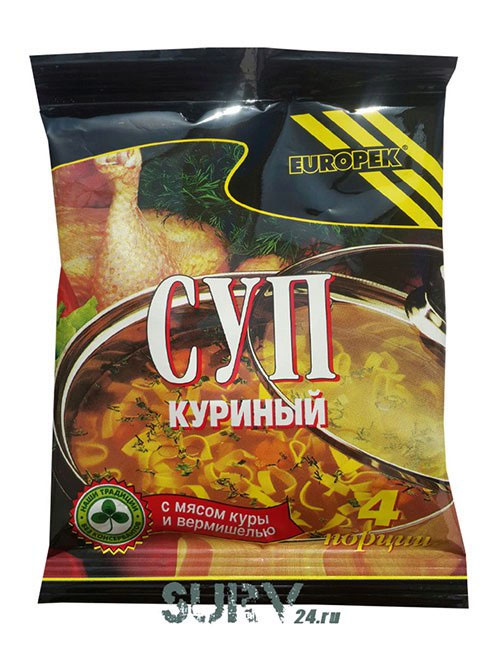 Суп быстрого приготовления E-pek - это готовое первое блюдо из натуральных ингридиентов. Куриный суп с мясом куры и вермишелью.