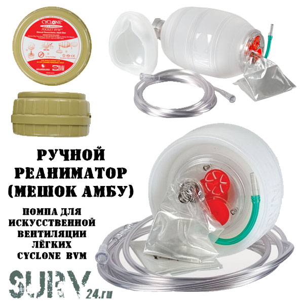 Cyclone Pocket BVM или "Мешок АМБУ — Циклон Покет БВМ" - это самая компактная и популярная в мире модель «карманного мешка амбу» для ручной реанимации (искусственной вентиляции легких). Трубка для подключения к кислородному баллону в комплекте.