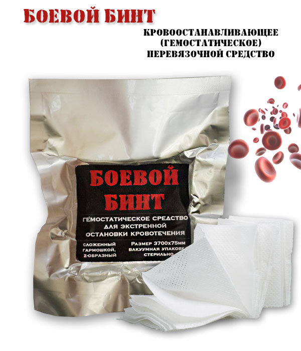 Боевой бинт – это специальное кровоостанавливающее средство для экстренной остановки кровотечений. Позволяет в кратчайшие сроки остановить кровь, стабилизировав состояние пострадавшего и препятствуя дальнейшей кровопотере.