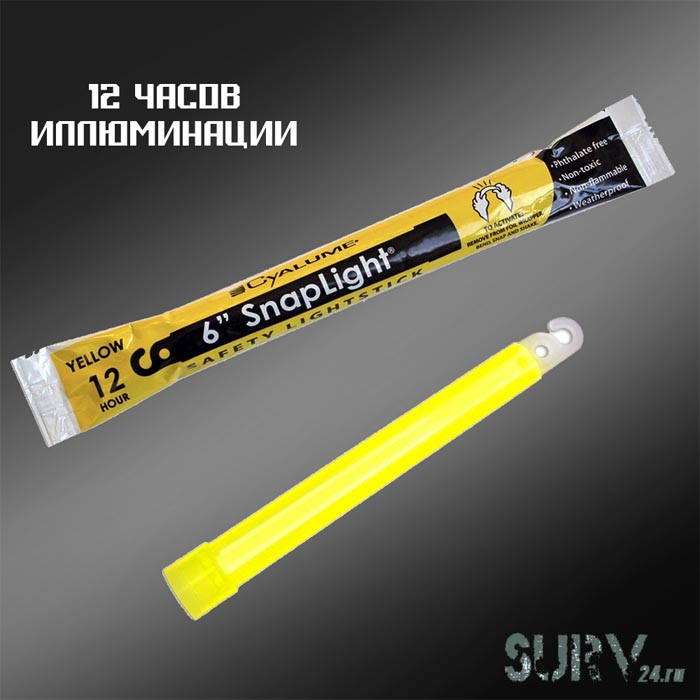 Артикул: Химический источник подачи сигнала Cyalume Snaplight 6" (желтый, на 12 часов)