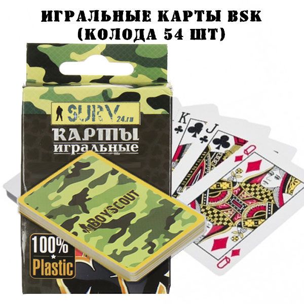 Туристические игральные карты BSK - это компактная походная колода игральных карт для скрашивания досуга. Она состоит из 54 карт, что позволяет играть даже большой компанией вместе с друзьями.