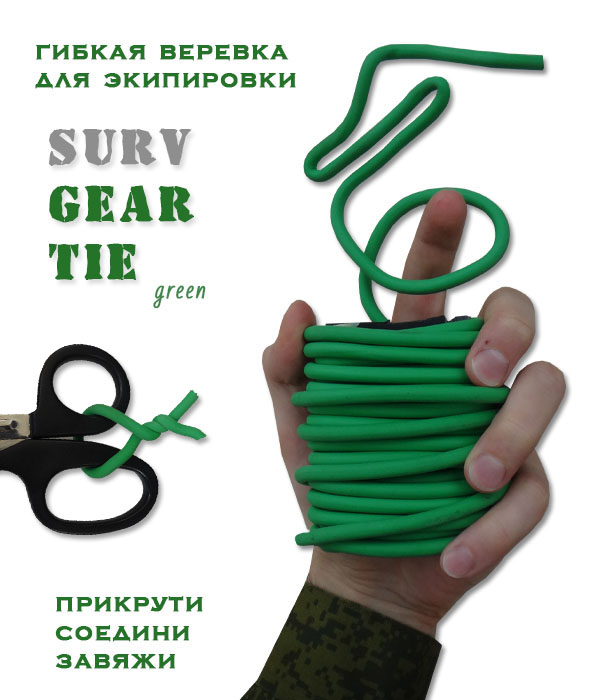 Артикул: Универсальная гибкая туристическая веревка Surv Gear Tie (зеленая)